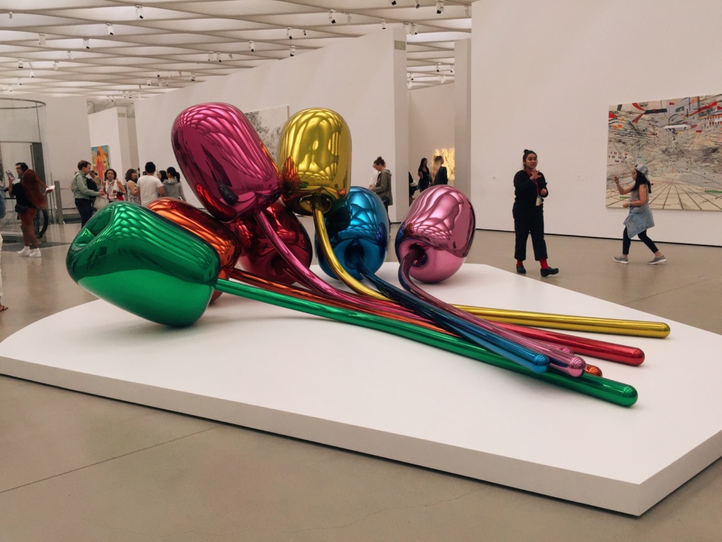 Next, we saw a Yayoi Kusama exhibit. It was basically a tiny room of lights and mirrors that you look into. And you only get 45 seconds to explore the Yayoi Kusama exhibits so you gotta be quick! We only thought of something else cool to do after we were done so it was too late, but maybe you can do it! Instead of just looking straight into the mirror and taking a picture of yourself, have someone take a picture of your head peeking into the exhibit from the inside.